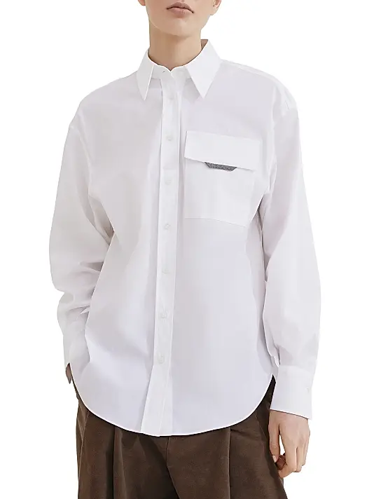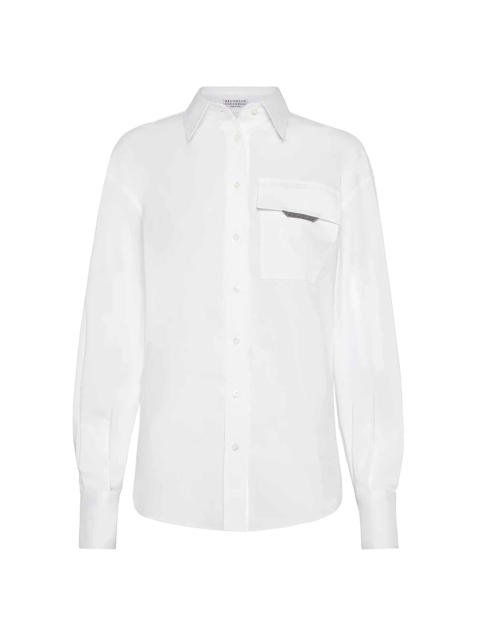 Brunello Cucinelli Stretch Cotton Poplin Shirt with Shiny Flap Detai