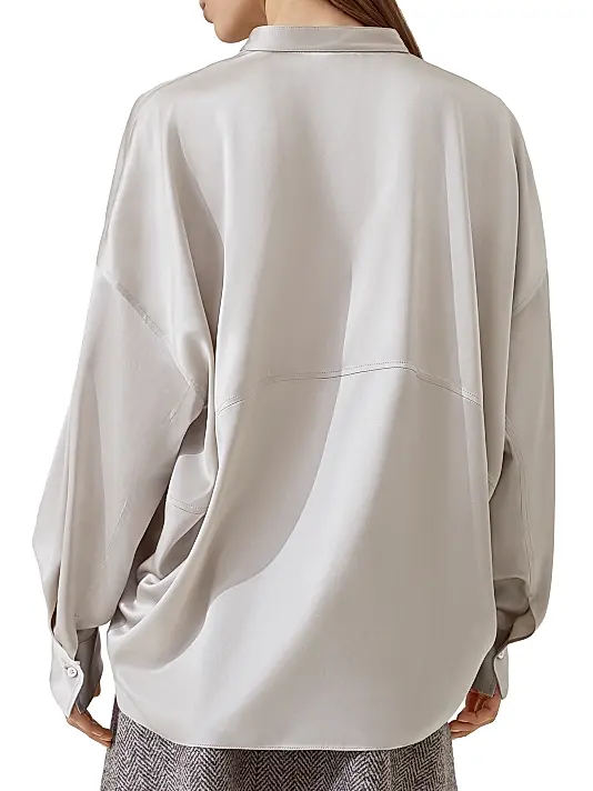 & Free ShippingStretch silk satin blouse with balloon sleeves