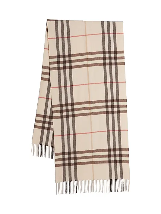 Cashmere-Blend Cream Check Scarf