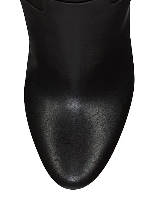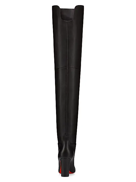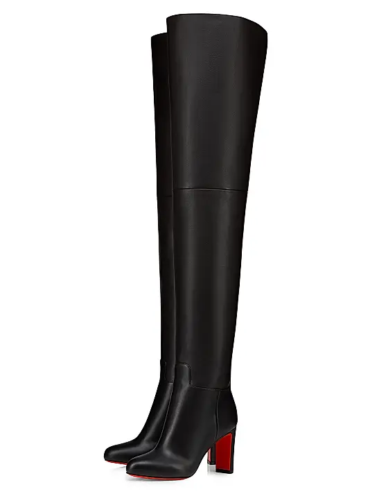 The Loo 85MM Leather Thigh Boots from Christian Louboutin are designed as tight-fit thigh-high boots made from premium calf leather. Featuring an elegant 85mm (3.3″) heel, they showcase the brand’s mastery of silhouette and craftsmanship. Made in Italy, these boots embody Louboutin’s signature sophistication and empowering aesthetic.