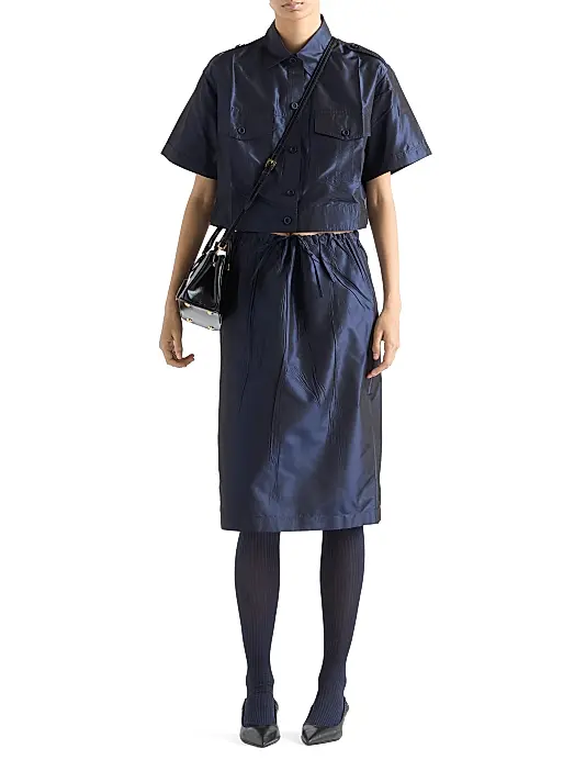 Details: Plush velvet, gold-tone logo buttons, structured shoulders, internal patterned lining.