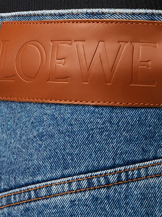 The LOEWE Anagram Baggy Pants deliver a modern, relaxed silhouette infused with the brand’s signature luxury craftsmanship. Made in Italy, these pants feature a comfortable mid-rise fit and a wide-leg cut that creates an effortlessly stylish drape. Embroidered Anagram logos accent the pockets, adding a refined branding touch that remains subtle yet distinctive. The composition blends 89% cotton with 7% polyester for durability and comfort, along with 6% leather details that enhance the premium feel. Finished with a classic zip fly and button closure, the pants are designed for versatility—pairing seamlessly with casual looks or elevated streetwear ensembles. Rooted in LOEWE’s 179-year heritage of fine craftsmanship and playful innovation, these trousers reflect the house’s sophisticated yet modern approach to everyday luxury.