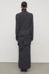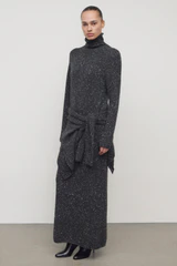 Ankle-length column dress in speckled midweight cashmere with rolled turtleneck and seamless construction. More information: 100% Cashmere, Made in Italy. The dress is categorized under Women – Dresses.
