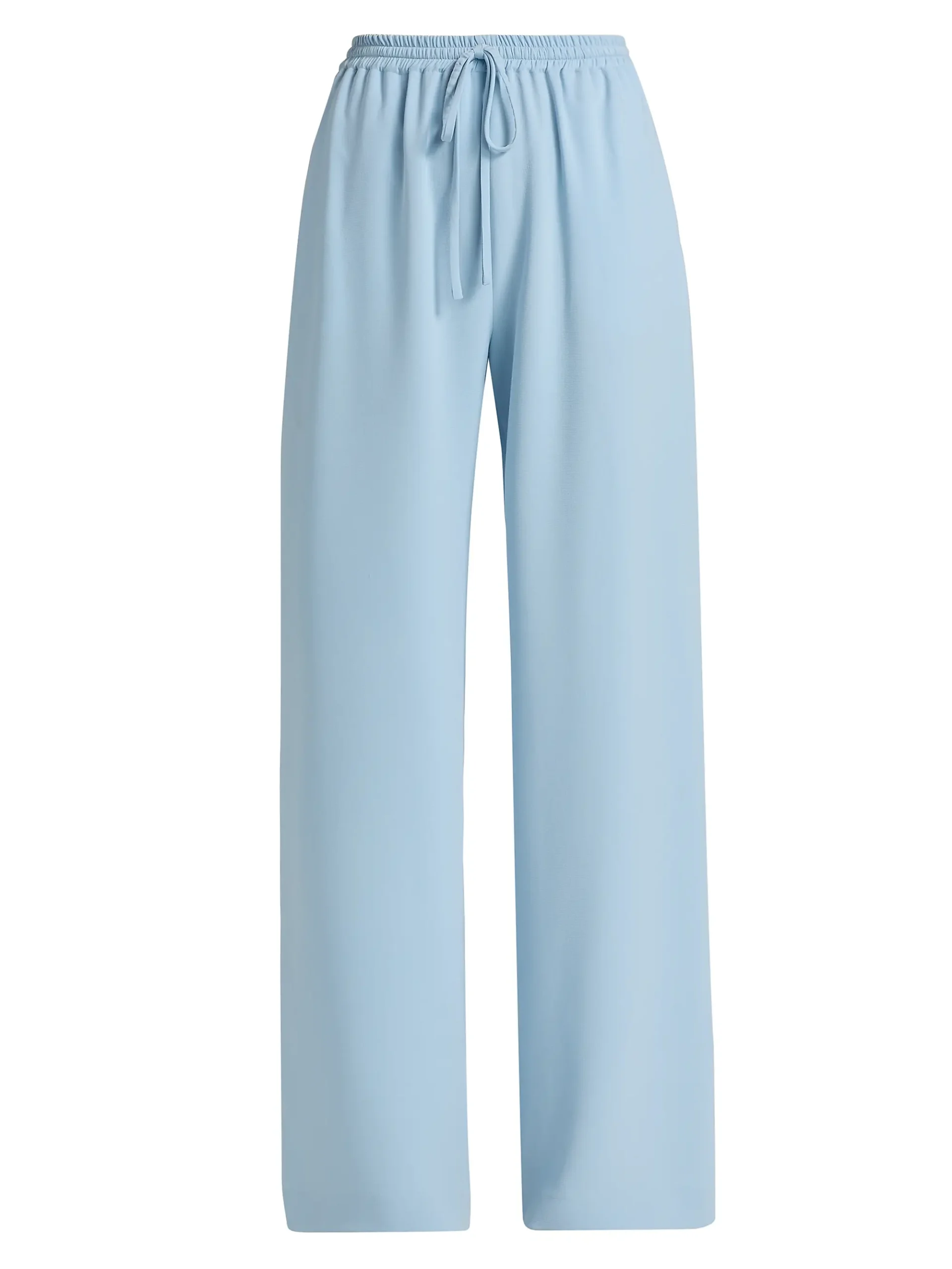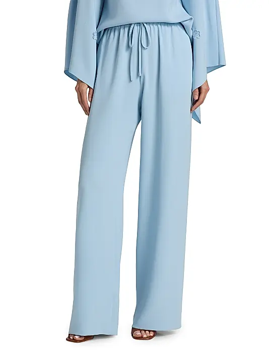 & Free ShippingLuxury silk georgette wide-leg pants with an elastic drawstring waist