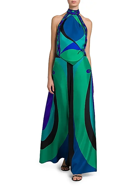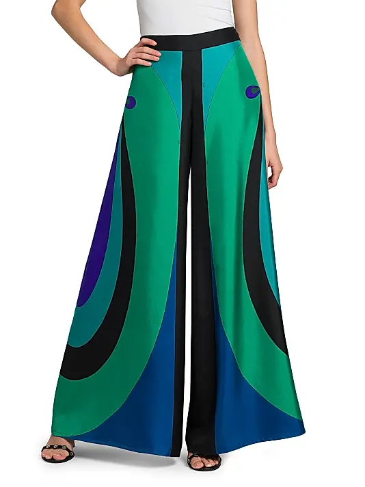 & Free ShippingHigh-rise silk twill pants with a flowing wide-leg silhouette and vibrant pattern.