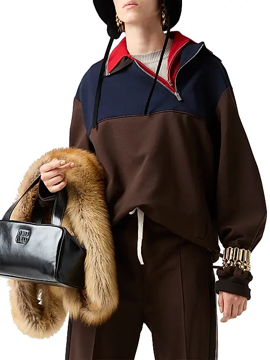 • Details: Diagonal zip accent, structured collar, fine knit or felted texture.