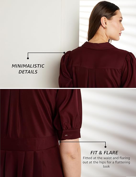 Embrace timeless elegance with this sophisticated Surplice V-Neck Midi Dress. The rich deep burgundy or maroon hue makes it a perfect choice for transitioning seasons, formal events, or office wear.