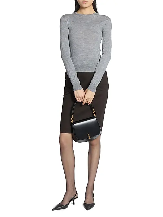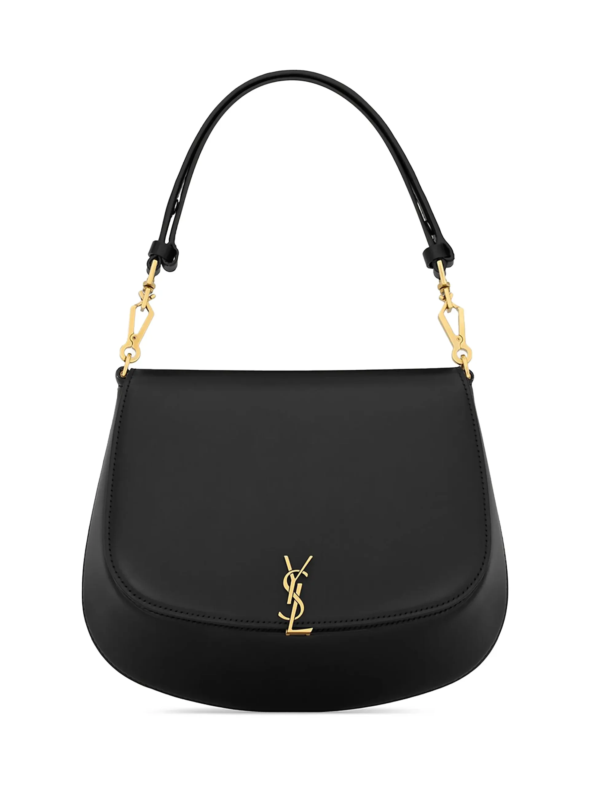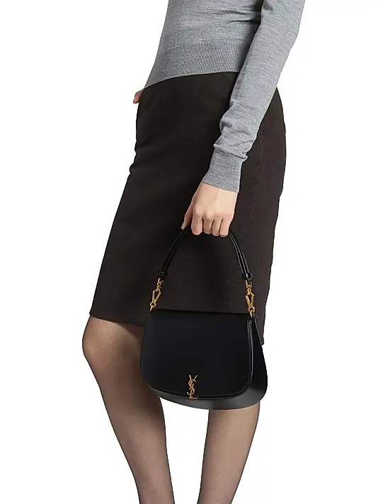 - Iconic Detail: Interlocking Gold-Tone YSL Cassandre Logo