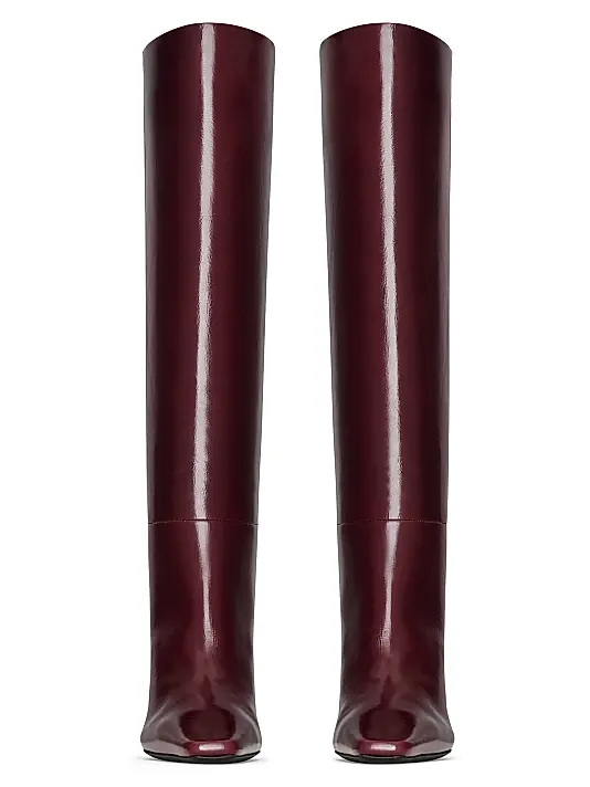 & Free ShippingPointed-toe tube boots with a tapered block heel and bronze-tone Cassandre detail.