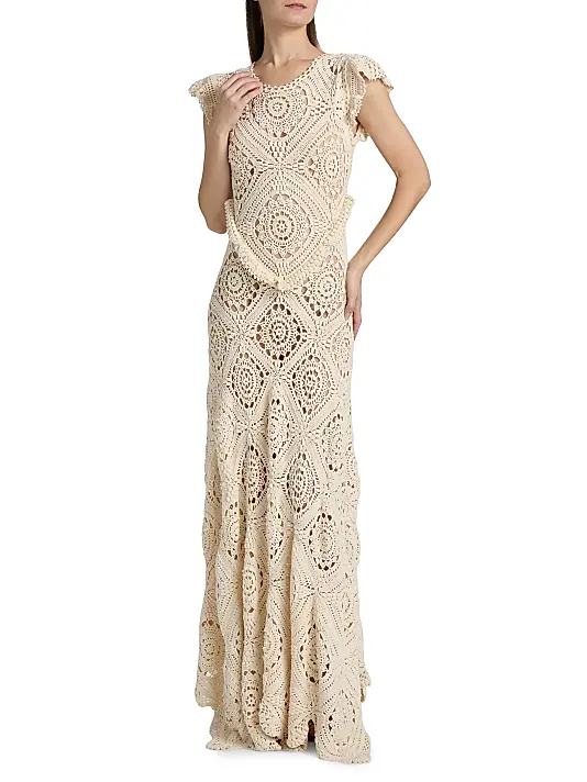 The Annalisa Crochet Maxi Dress by Ulla Johnson is a beautifully crafted, artisanal piece that highlights the brand’s dedication to craftsmanship and natural materials. Made entirely from 100% cotton, the dress is meticulously hand-crocheted, giving it rich texture, distinct patterning, and a luxurious, heirloom-like feel. Designed with a classic round neckline and short sleeves, the silhouette is effortless yet refined, offering breathable comfort paired with elevated detailing. This slip-on style features a pull-over design, making it both easy to wear and elegant in its simplicity. Falling to a graceful maxi length, the dress has a fluid drape that flatters the figure, ideal for resort wear, beachfront dinners, or sophisticated daytime outings.