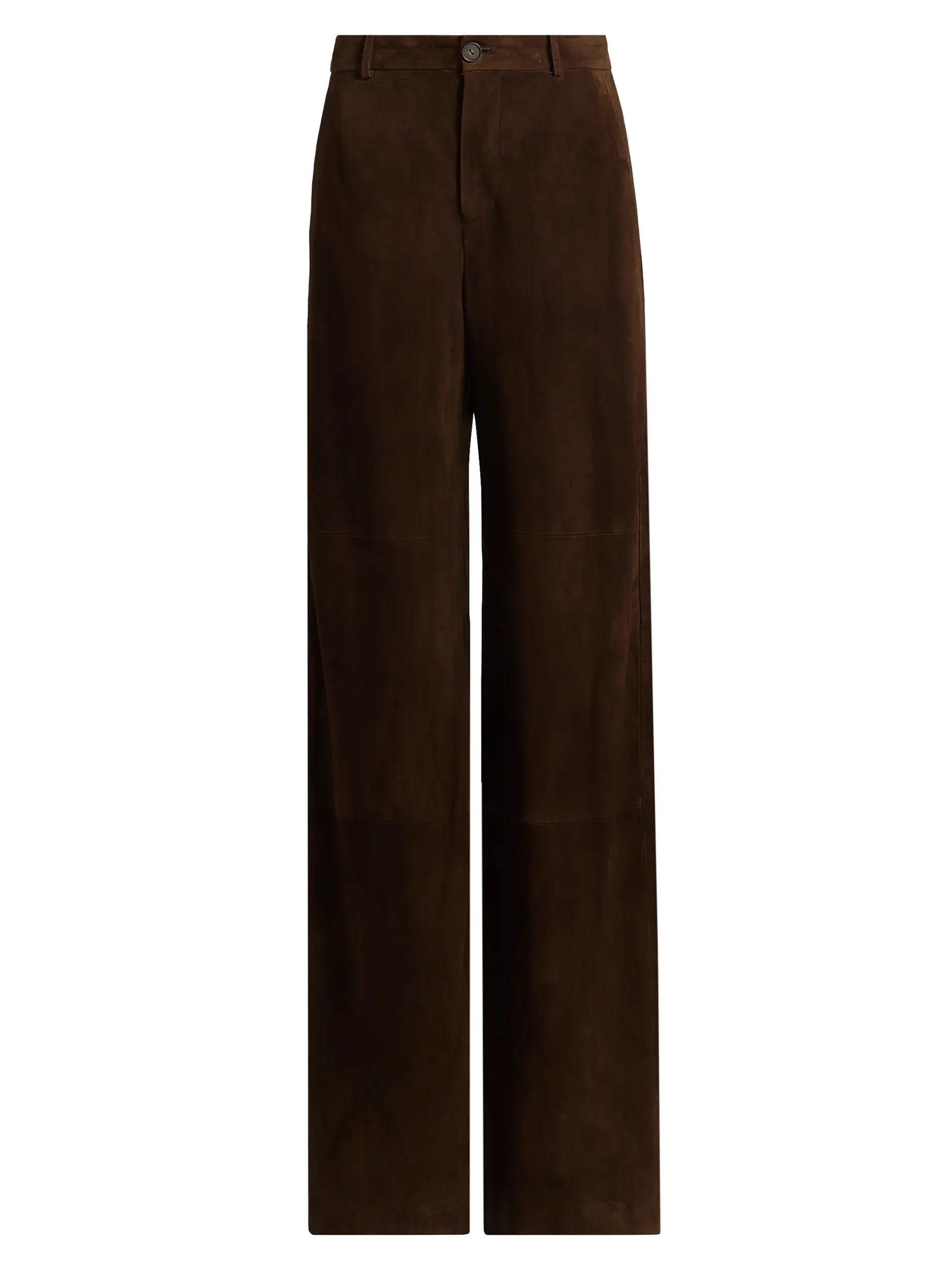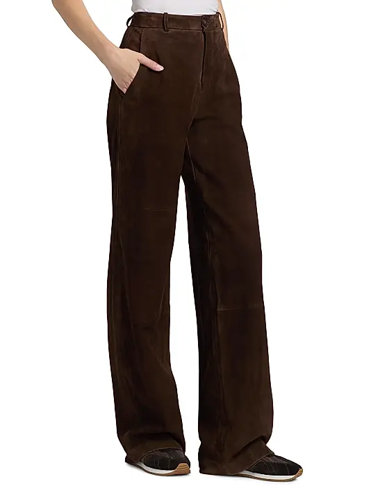 & Free ShippingSuede wide-leg trousers with mid-rise fit and classic pocket detailing